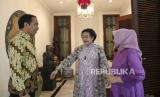 REPUBLIKA.CO.ID, JAKARTA -- Presiden Joko Widodo (kanan) dan Ibu Negara Iriana Joko Widodo (kedua kanan) berbincang dengan Ketua Umum PDIP Megawati Soekarnoputri (kiri) halal bihalal Hari Raya Idul Fitri 1444 Hijriah di kediaman Megawati Soekarnoputri, jalan Teuku Umar, Menteng, Jakarta, Kamis (27/4/2023).