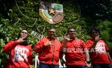 Sekretaris Jenderal Partai Demokrasi Indonesia Perjuangan (PDIP) Hasto Kristiyanto (kedua kiri) berfoto dengan Ketua DPP Ahmad Basarah (kedua kanan), politisi PDIP Adian Napitupulu (kanan) dan Riezky Aprilia (kiri) usai menyampaikan keterangan kepada wartawan di Kantor DPP PDIP,Jakarta, Kamis (27/4/2023). (FOTO : Republika/Prayogi)