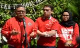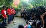 REPUBLIKA.CO.ID, JAKARTA. -- Sekretaris Jenderal Partai Demokrasi Indonesia Perjuangan (PDIP) Hasto Kristiyanto bersama Ketua DPP Ahmad Basarah, politisi PDIP Adian Napitupulu dan Riezky Aprilia menyampaikan keterangan kepada wartawan di Kantor DPP PDIP,Jakarta, Kamis (27/4/2023).
