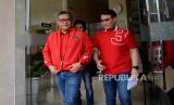Sekretaris Jenderal Partai Demokrasi Indonesia Perjuangan (PDIP) Hasto Kristiyanto (kiri) bersama Ketua DPP Ahmad Basarah (kanan) bersiap menyampaikan keterangan kepada wartawan di Kantor DPP PDIP,Jakarta, Kamis (27/4/2023). (FOTO : Republika/Prayogi)