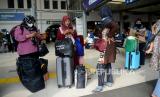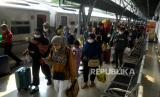 REPUBLIKA.CO.ID,JAKARTA -- Sejumlah penumpang kereta api baru tiba di Stasiun Pasar Senen, Jakarta, Kamis (27/4/2023).