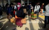 Sejumlah penumpang kereta api menaikan barang setibanya di Stasiun Pasar Senen, Jakarta, Kamis (27/4/2023). Sejak 24 April 2023 angka penumpang yang tiba di area Daop 1 Jakarta mulai mengalami peningkatan, secara total pada hari ini Kamis 27 April 2023 terdapat sekitar 43.500 pengguna yang tiba. Dari jumlah tersebut 16.000 merupakan penumpang turun di Stasiun Pasar Senen, 15.900 penumpang turun di Stasiun Gambir, 4500 penumpang di Stasiun Bekasi, 4.600 penumpang di Stasiun Jatinegara dan sisanya penumpang turun di Stasiun Jakarta Kota, Cikarang, Karawang dan Cikampek. Jumlah tersebut mengalami peningkatan hingga 2x lipat dari masa normal. (FOTO : Republika/Prayogi)