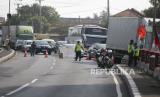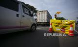 REPUBLIKA.CO.ID,INDRMAYU -- Petugas mengarahkan kendaraan saat rekayasa lalu lintas di Simpang Lohbener, Indramayu, Jawa Barat, Kamis (27/4/2023).