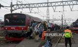 REPUBLIKA.CO.ID,BOGOR -- Sejumlah penumpang turun dari gerbong Kereta Rel Listrik (KRL) Commuterline Jabodetabek di Stasiun Bogor, Jawa Barat, Kamis (27/4/2023).