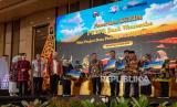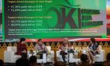 Menteri Pariwisata dan Ekonomi Kreatif Sandiaga Uno (kedua kiri) bersama Gubernur Jawa Tengah Ganjar Pranowo (kedua kanan), Kepala Eksekutif Pengawas Perilaku Pelaku Usaha Jasa Keuangan, Edukasi dan Pelindungan Konsumen Otoritas Jasa Keuangan (OJK) Friderica Widyasari Dewi (kiri) dan Presenter TV Senandung Nacita selaku moderator (kanan) memberikan pemaparan dalam Rapat Koordinasi Daerah (Rakorda) dan Pleno Tim Percepatan Akses Keuangan Daerah (TPAKD) Se-Jawa Tengah di Semarang, Jawa Tengah, Kamis (27/4/2023). Rakorda TPAKD bertajuk Percepatan dan Perkembangan Ekonomi Jawa Tengah Melalui Kemandirian Ekonomi Desa itu merupakan kegiatan rutin tahunan yang dilakukan OJK bersama pemerintah daerah dan kementrian/lembaga sebagai upaya evaluasi dan konsolidasi program kerja inklusi keuangan di setiap daerah. (FOTO : ANTARA FOTO/Aji Styawan)