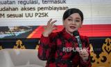 Kepala Eksekutif Pengawas Perilaku Pelaku Usaha Jasa Keuangan, Edukasi dan Pelindungan Konsumen Otoritas Jasa Keuangan (OJK) Friderica Widyasari Dewi (kiri) memberikan pemaparan dalam Rapat Koordinasi Daerah (Rakorda) dan Pleno Tim Percepatan Akses Keuangan Daerah (TPAKD) Se-Jawa Tengah di Semarang, Jawa Tengah, Kamis (27/4/2023). Rakorda TPAKD bertajuk Percepatan dan Perkembangan Ekonomi Jawa Tengah Melalui Kemandirian Ekonomi Desa itu merupakan kegiatan rutin tahunan yang dilakukan OJK bersama pemerintah daerah dan kementrian/lembaga sebagai upaya evaluasi dan konsolidasi program kerja inklusi keuangan di setiap daerah. (FOTO : ANTARA FOTO/Aji Styawan)