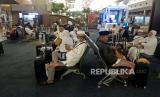 Jamaah umroh Abhinaya PT Dava Tour & Travel menunggu keberangkatan di Terminal 3 Bandara Internasional Soekarno-Hatta, Tangerang, Banten, Sabtu (29/4/2023). (FOTO : Republika/Prayogi)