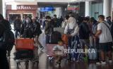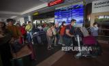 REPUBLIKA.CO.ID, BATAM -- Sejumlah calon penumpang antre masuk ke dalam terminal keberangkatan Bandara Internasional Hang Nadim, Batam, Kepulauan Riau, Ahad (30/4/2023).