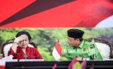 Ketua Umum PDIP Megawati Soekarnoputri (kiri) berbincang dengan Plt Ketua Umum PPP Mardiono (kanan) saat melakukan pertemuan di kantor DPP PDIP, Jakarta, Ahad (30/4/2023). Partai Demokrasi Indonesia Perjuangan (PDI P) dan Partai Persatuan Pembangunan (PPP) secara resmi menjalin kerja sama politik untuk menangkan Ganjar Pranowo di Pilpres 2024. (FOTO : ANTARA FOTO/Galih Pradipta)