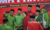 REPUBLIKA.CO.ID, JAKARTA -- Ketua Umum PDIP Megawati Soekarnoputri bersama Plt Ketua Umum PPP Mardiono, Sekjen PPP Arwani Thomafi, Sekjen PDIP Hasto Kristiyanto serta Gubernur Jawa Tengah Ganjar Pranowo melakukan pertemuan di kantor DPP PDIP, Jakarta, Ahad (30/4/2023).