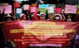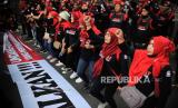 Sejumlah pekerja rumah tangga saat melakukan aksi di kawasan Patung Kuda, Jakarta, Senin (1/5/2023). Aksi yang dilakukan dalam rangka peringatan Hari Buruh memberikan sejumlah tuntutan diantaranya meminta pemerintah untuk mencabut Omnibus Law UU No 6 Tahun 2023 tentang Ciptaker, cabut parliamentary threshold 4 persen dan Presidential threshold 20 persen, sahkan RUU DPR dan perlindungan pekerja rumah tangga, tolak RUU Kesehatan, Reforma Agraria dan kedaulatan pangan serta hapus outsourcing tolak upah murah. (FOTO : Republika/Putra M. Akbar)