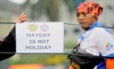 REPUBLIKA.CO.ID,JAKARTA -- Sejumlah buruh saat melakukan aksi di kawasan Patung Kuda, Jakarta, Senin (1/5/2023).