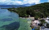 REPUBLIKA.CO.ID,MAMUJU -- Foto udara wisata pulau karampuang Mamuju, Sulawesi Barat, Senin (1/5/2023).