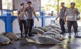 Duapuluhsatu ekor penyu hijau diamankan oleh Ditpolairud Polda Bali dan BKSDA Bali. (FOTO : EPA-EFE/MADE NAGI)
