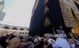 REPUBLIKA.CO.ID,MAKKAH -- Suasana jamaah umroh saat berdoa di Multazam Masjidil Haram, Makkah, Arab Saudi, Ahad (30/4/2023).