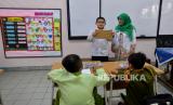Pelajar mengikuti kegiatan belajar di SDN Pejaten Barat 01, Jakarta, Selasa (2/5/2023). Pada hari pertama sekolah usai libur lebaran 1444 hijriah, kegiatan belajar mengajar mulai aktif kembali untuk semua jenjang pendidikan  SD, SMP, dan SMA yang bertepatan pada Hari Pendidikan Nasional 2023. (FOTO : Republika/Thoudy Badai)