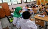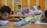 REPUBLIKA.CO.ID,JAKARTA -- Pelajar mengikuti kegiatan belajar di SDN Pejaten Barat 01, Jakarta, Selasa (2/5/2023).
