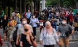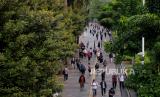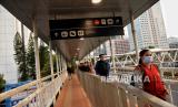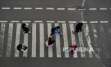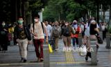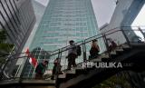 REPUBLIKA.CO.ID, SUDIRMAN -- Pekerja berjalan di pedestrian kawasan perkantoran Sudirman, Jakarta, Selasa (2/5/2023).