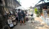 Wisatawan berbelanja cenderamata saat berjalan-jalan di kawasan Tamansari, Yogyakarta, Rabu (3/5/2023). Libur Lebaran Idul Fitri 1444H di Daerah Istimewa Yogyakarta lebih sepi dibanding tahun lalu. Dinas Pariwisata DIY memperkirakan kunjungan sebanyak akan meleset dari target sebanyak 5,9 juta wisatawan pada liburan lebaran tahun ini. Layanan kepada wisatawan atau hospitality seperti tarif parkir, harga cenderamata diduga menjadi penyebab turunnya kunjungan wisatawan ini. (FOTO : Republika/Wihdan Hidayat)