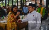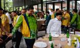 Ketua Umum Partai Golkar Airlangga Hartarto (kiri) bersama Ketua Umum Partai Kebangkitan Bangsa (PKB) Muhaimin Iskandar (kanan) saat melakukan pertemuan di Jakarta, Rabu (3/5/2023). Pertemuan tersebut dalam rangka halal bi halal sekaligus membahas terkait koalisi partai. (FOTO : Republika/Thoudy Badai)