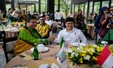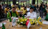 Ketua Umum Partai Golkar Airlangga Hartarto (kanan) bersama Ketua Umum Partai Kebangkitan Bangsa (PKB) Muhaimin Iskandar (kiri) saat melakukan pertemuan di Jakarta, Rabu (3/5/2023). Pertemuan tersebut dalam rangka halal bi halal sekaligus membahas terkait koalisi partai. (FOTO : Republika/Thoudy Badai)