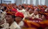 Purnawirawan mengikuti reuni akbar dan halal bihalal bersama Menteri Pertahanan, Prabowo Subianto di Jogja Expo Center, Yogyakarta, Rabu (3/5/2023). (FOTO : Republika/Wihdan Hidayat)