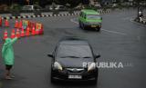 Petugas Dinas Perhubungan mengatur lalu lintas di Jalan Raya Pajajaran yang diberlakukan dua arah dampak dari pembangunan jembatan Otista di Kota Bogor, Jawa Barat, Rabu (3/5/2024). (FOTO : Republika/Putra M. Akbar)