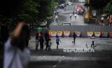 Anak-anak bermain pada ruas Jalan Otista yang ditutup di Kota Bogor, Jawa Barat, Rabu (3/5/2024). (FOTO : Republika/Putra M. Akbar)