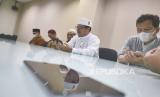 Perwakilan yayasan Yatim Mandiri Berdoa di Gedung Republika, Jakarta, Rabu (3/5/2023). (FOTO : Ahmad fauzi /Republika)