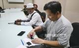Perwakilan yayasan yatim piatu melakukan tanda tangan di Gedung Republika, Jakarta, Rabu (3/5/2023). (FOTO : Ahmad fauzi/Republika)