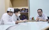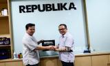 Wapemred Republika Nurhasan murti aji (kanan) berbicara kepada Perwakilan yayasan Yatim Mandiri di Gedung Republika, Jakarta, Rabu (3/5/2023). (FOTO : Ahmad fauzi/Republika)