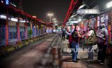 Penumpang menunggu bus transjakarta di Terminal Blok M, Jakarta, Rabu (3/5/2023). (FOTO : Republika/Thoudy Badai)