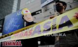 REPUBLIKA.CO.ID,JAKARTA -- Sejumlah aktivis yang tergabung dalam Aliansi Masyarakat Sipil Indonesia saat melakukan aksi di depan Kedutaan Besar Jepang, Jakarta, Kamis (4/5/2023).