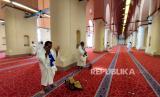 Jamaah Umroh Abhinaya Tour & Travel melakukan shalat sunnah ihram di Masjid Bir Ali, Madinah, Arab Saudi, Kamis (4/5/2023). (FOTO : Republika/Prayogi)