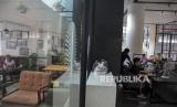 Pengunjung berada di area resepsionis di hotel De Braga by Artotel, Jalan Braga, Sumur Bandung, Kota Bandung, Jawa Barat, Jumat (5/5/2023). Persatuan Hotel dan Restoran Indonesia (PHRI) mencatat, okupansi hotel di Kota Bandung pada libur Lebaran 2023 hingga 25 April 2023 meningkat hingga 86,45 persen dibandingkan periode yang sama pada tahun lalu. (FOTO : ABDAN SYAKURA/REPUBLIKA)