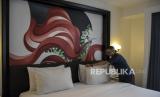 Pekeja membersihkan tempat tidur di salah satu kamar di hotel De Braga by Artotel, Jalan Braga, Sumur Bandung, Kota Bandung, Jawa Barat, Jumat (5/5/2023). Persatuan Hotel dan Restoran Indonesia (PHRI) mencatat, okupansi hotel di Kota Bandung pada libur Lebaran 2023 hingga 25 April 2023 meningkat hingga 86,45 persen dibandingkan periode yang sama pada tahun lalu. (FOTO : ABDAN SYAKURA/REPUBLIKA)