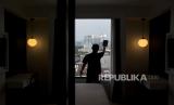 Pekeja membersihkan kaca di salah satu kamar di hotel De Braga by Artotel, Jalan Braga, Sumur Bandung, Kota Bandung, Jawa Barat, Jumat (5/5/2023). Persatuan Hotel dan Restoran Indonesia (PHRI) mencatat, okupansi hotel di Kota Bandung pada libur Lebaran 2023 hingga 25 April 2023 meningkat hingga 86,45 persen dibandingkan periode yang sama pada tahun lalu. (FOTO : ABDAN SYAKURA/REPUBLIKA)