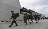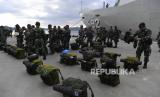 REPUBLIKA.CO.ID, MANGGARAI BARAT -- Prajurit TNI berbaris usai turun dari KRI Banjarmasin-592 di Pelabuhan Multipurpose, Labuan Bajo, Manggarai Barat, NTT, Jumat (5/5/2023).
