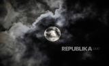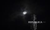 Gerhana bulan penumbra yang sebagian tertutup awan di Beijing Sabtu, (6/5/2023) dini hari. (FOTO : AP/Ng Han Guan)