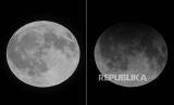 Foto komposit dua kali lipat menunjukkan (kiri-kanan) bulan purnama selama gerhana bulan penumbra (mulai gerhana maksimum) di Taipei, Taiwan, (6/5/2023). (FOTO : EPA-EFE/RITCHIE B. TONGO)