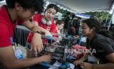 REPUBLIKA.CO.ID, SOLO -- Peserta mengikuti perlombaan pada acara Kompetisi Robot Air (MATE ROV) ke-IV di Kolam Renang Tirtomoyo, Solo, Jawa Tengah, Sabtu (6/5/2023).