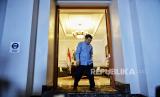 Wakil Presiden Republik Indonesia ke 10 dan 12 Jusuf Kalla berjalan saat akan menyambut kedatangan Ketua Umum Partai Kebangkitan Bangsa (PKB) Muhaimin Iskandar di kediaman pribadi Jusuf Kalla di Jakarta, Sabtu (6/5/2023). (FOTO : Republika/Thoudy Badai)