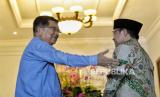 REPUBLIKA.CO.ID, JAKARTA -- Wakil Presiden Republik Indonesia ke 10 dan 12 Jusuf Kalla menyambut kedatangan Ketua Umum Partai Kebangkitan Bangsa (PKB) Muhaimin Iskandar saat melakukan pertemuan di kediaman pribadi Jusuf Kalla di Jakarta, Sabtu (6/5/2023).