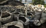 Warga melintas di dekat tumpukan karung yang berisi batu bara di kawasan Sungai Serut, Kecamatan Muara Bangka Hulu, Kota Bengkulu, Provinsi Bengkulu, Sabtu (06/5/2023). Warga (FOTO : ANTARA FOTO/Muhammad Izfaldi)