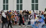 Pengunjung memadati Kawasan Kota Tua, Jakarta, Sabtu (6/5/2023). Badan Kesehatan Dunia (WHO) (FOTO : Republika/Thoudy Badai)