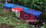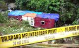 REPUBLIKA.CO.ID, TEGAL -- Satu unit bus dalam posisi terbalik usai jatuh ke dalam jurang di kawasan objek wisata Guci, Kabupaten Tegal, Jawa Tengah, Ahad (7/5/2023). Bus yang berisi sekitar 50 penumpang peziarah asal Tangerang Selatan, Banten, tersebut jatuh masuk jurang diduga karena rem tangan bermasalah saat sopir berada di luar bus.