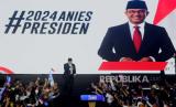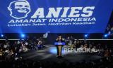 Anies juga menyinggung lawan kontestasi pilpres yang dihadapinya yang memiliki sumber daya yang luar biasa besar, lawan yang memiliki kekuatan yang sangat besar, lawan yang bisa mendominasi, (FOTO : Republika/Putra M. Akbar)