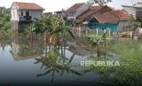 Kebun dan rumah terendam banjir di daerah Bojongsoang, Kabupaten Bandung, Ahad (7/5/2023). (FOTO : Edi Yusuf/Republika)