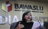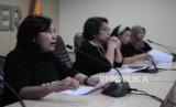 Mantan Anggota DKPP periode 2017-2022 Ida Budiati menyampaikan konferensi pers terkait Peraturan Komisi Pemilihan Umum (PKPU) Nomor 10 Pasal 8 di Jakarta, Senin (8/4/2023). Aksi gabungan dari kelompok Masyarakat Peduli Keterwakilan Perempuan PKPU Nomor 10 Pasal 8 Ayat (2) mengenai perhitungan bakal calon perempuan di setiap dapil. Mereka menuntut untuk mengubah ketentuan pembulatan ke bawah pada aturan teknis implementasi kuota 30 persen bakal calon legislatif perempuan. Pasal tersebut dinilai bermasalah karena dapat mematikan upaya peningkatan keterwakilan perempuan dan pencalonan DPR serta DPRD. (FOTO : Republika/Putra M. Akbar)