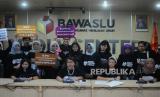 Mantan Anggota DKPP periode 2017-2022 Ida Budiati bersama pendiri Institut Perempuan Valentina Sagala, Wakil Ketua Umum Partai Gerindra Rahayu Saraswati dan Dewan Pembina Perludem Titi Anggraini (dari kiri ke kanan) menyampaikan konferensi pers terkait Peraturan Komisi Pemilihan Umum (PKPU) Nomor 10 Pasal 8 di Jakarta, Senin (8/4/2023). Aksi gabungan dari kelompok Masyarakat Peduli Keterwakilan Perempuan PKPU Nomor 10 Pasal 8 Ayat (2) mengenai perhitungan bakal calon perempuan di setiap dapil. Mereka menuntut untuk mengubah ketentuan pembulatan ke bawah pada aturan teknis implementasi kuota 30 persen bakal calon legislatif perempuan. Pasal tersebut dinilai bermasalah karena dapat mematikan upaya peningkatan keterwakilan perempuan dan pencalonan DPR serta DPRD. (FOTO : Republika/Putra M. Akbar)